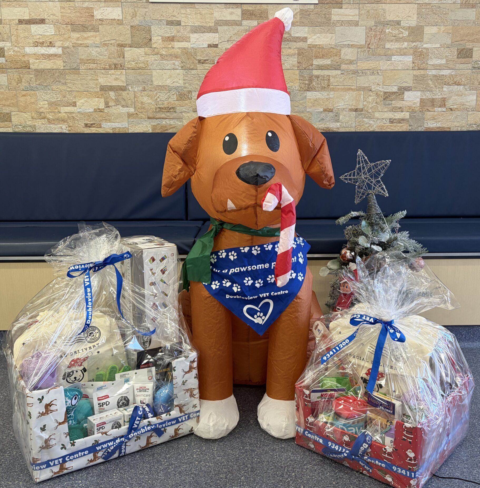 During the month of December, every time you bring your pet in for a consult at Doubleview Vet Centre, you’ll automatically be entered into the draw to win a hamper of goodies! We have a gorgeous cat and dog hamper all wrapped up and ready to be won.